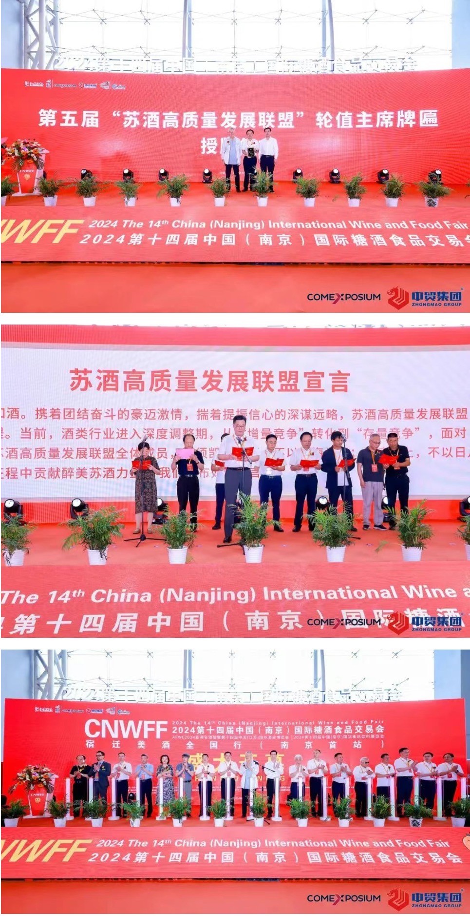 第十四屆南京糖酒會(huì),由中國(guó)酒業(yè)協(xié)會(huì)、中國(guó)酒類(lèi)流通協(xié)會(huì)、江蘇省工業(yè)和信息化廳、江蘇省商務(wù)廳、江蘇省工商業(yè)聯(lián)合會(huì)指導(dǎo),江蘇省財(cái)貿(mào)輕紡工會(huì)、南京市商務(wù)局支持,江蘇省酒類(lèi)行業(yè)協(xié)會(huì)、法國(guó)高美艾博展覽集團(tuán)、中貿(mào)科技集團(tuán)、中法合資高博中貿(mào)國(guó)際會(huì)展集團(tuán)主辦,中法合資高博中貿(mào)國(guó)際會(huì)展(南京)有限公司承辦,宿遷市酒產(chǎn)業(yè)發(fā)展促進(jìn)中心戰(zhàn)略合作。